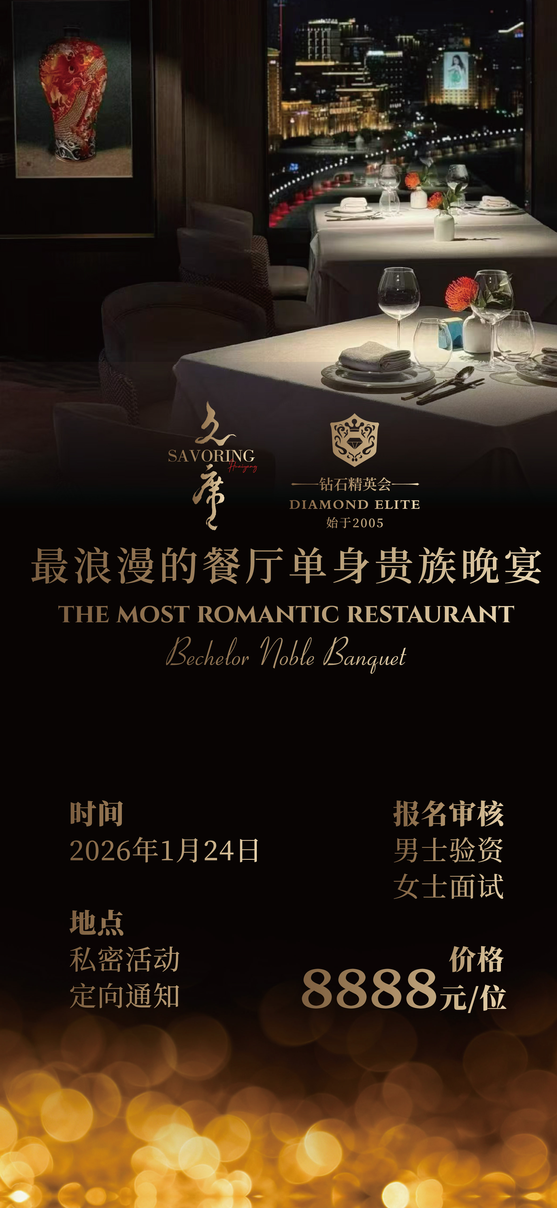 【钻石精英会】最浪漫的餐厅单身贵族晚宴